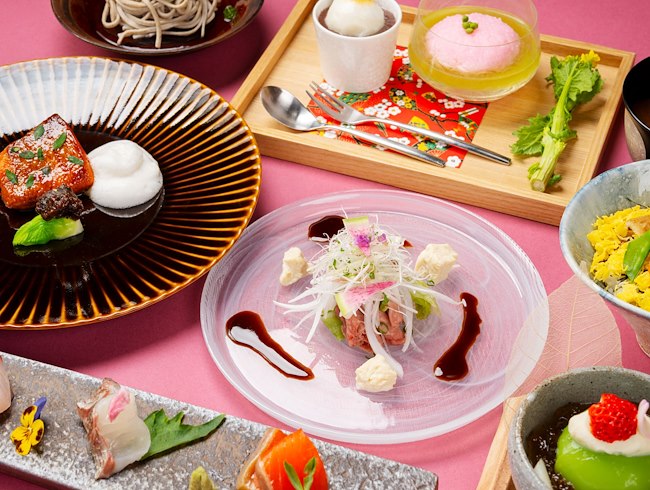 その時季に最も美味しい食材を料理長が厳選し、彩り・香り・味わいのすべてに季節感を映したお料理として一皿一皿丁寧に仕立てております